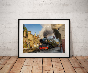 The Flying Scotsman is most well known as the first steam locomotive to reach the 100 miles per hour mark. It certainly wasn't going that fast as it came through Goathland station but it was going faster than trains normally go through there due to the fact it wasn't stopping. This service, the first of three that day from Grosmont to Pickering that day and the earlier start meant a quieter than usual Goathland station greeted us with only a handful of people including volunteers and the station master on the platform. I decided that I wanted a shot that although showed off the train would also show off the beautiful station of Goathland I framed this photo up with the old wooden shelter and lamp and stone station building sandwiching the locomotive as it came through with a train full of passengers headed for Pickering at the other end of the line. Having waited for the shot for about half an hour it was all over in a matter of seconds but it was worth the wait and although I rarely feature people in my photos I liked including both the couple on the other platform taking a photo and the volunteer on the same platform as myself just adding that human element to the frame.