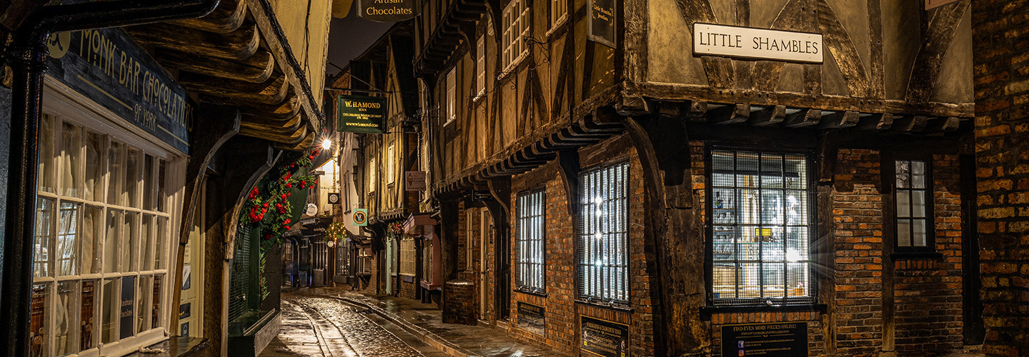 The Shambles in York are a heavily visited cobbled street with medieval buildings including some as old as the 14th century. Shambles is originally a term used in relation to open-air slaughterhouse / meat market which may not be the most glamorous but nowadays people are drawn in their thousands to the street for both the lovely independent shops but also the beautiful historical buildings. As a photographer I rarely enter photography competitions however the first I ever entered was the Digital Camera magazine Historic buildings competition and this was the photo I submitted. I figured there would be lots of photos of castles / abbeys submitted and hoped this night shot of the shambles would stand out and I’m pleased to say it won and they loved it so much the magazine asked me to write a double page spread about both myself and this image which was amazing! Having waited for the rain to stop having taken shelter in a nearby pub we headed for the shambles hoping they wouldn’t be too busy and that we could capture an empty street in between the crowds of visitors and ghost walks and while it took some patience, I’m pleased so say I did indeed manage to capture this shot.